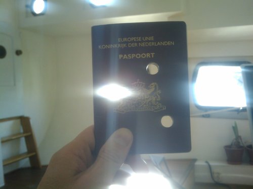 Picked up his new passport before his flight on Thursday... the old one was brutally murdered...